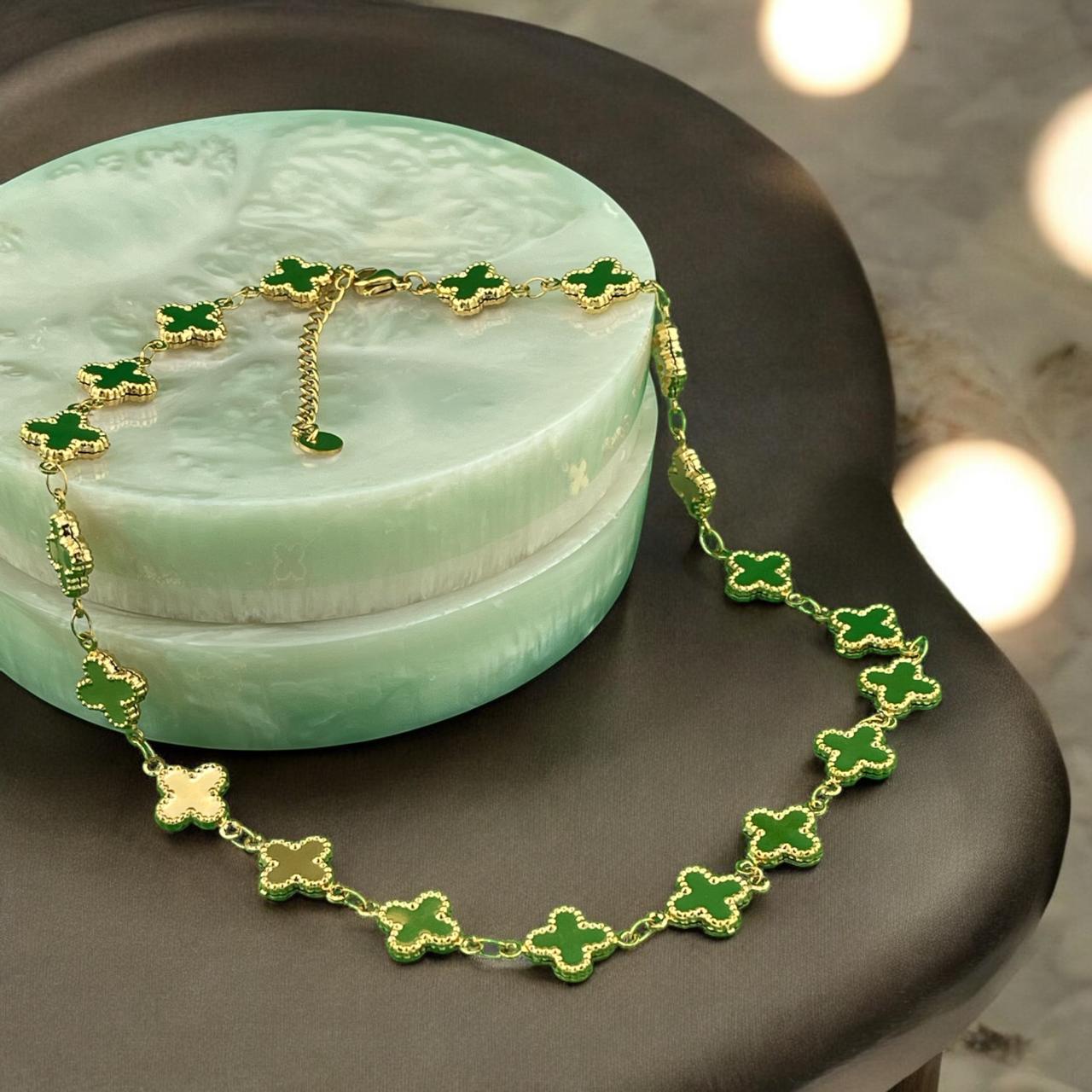 Estos tréboles en ORO LAMINADO DE 18k son la perfecta representación de elegancia y sofisticación. Ligero y cómodo de llevar, este collar se ha convertido en una tendencia imprescindible.